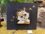 À partir des photos de votre chat, Marie-Odile réalise son portrait, habillé ou en situation choisie par vous. Plusieurs formats sont proposés, il suffit juste d’être un peu patient avant d’en prendre possession ;-)